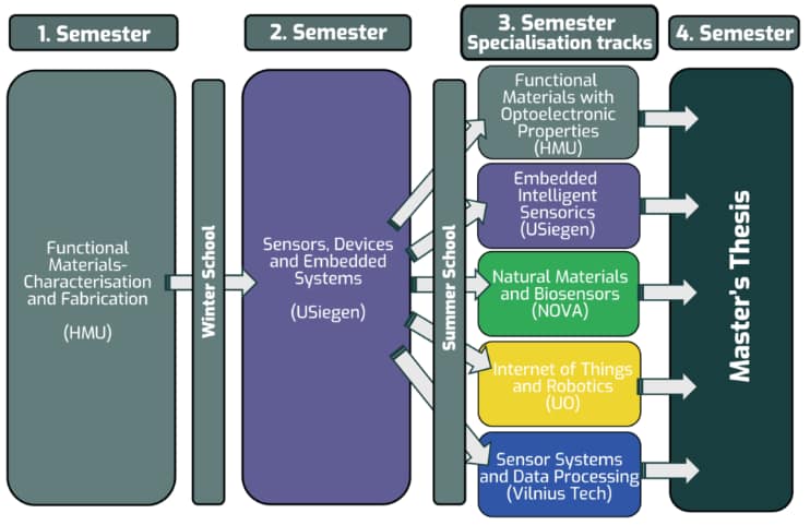 پرۆگرامەکە تەنها بۆ بواری ئەندازیاری نانۆسیستەمی ژیرە و شێوازی پرۆگرامەکە ٥ زانکۆی پێشکەوتووی ئەوروپی بەڕێوەیدەبەن کە بریتین