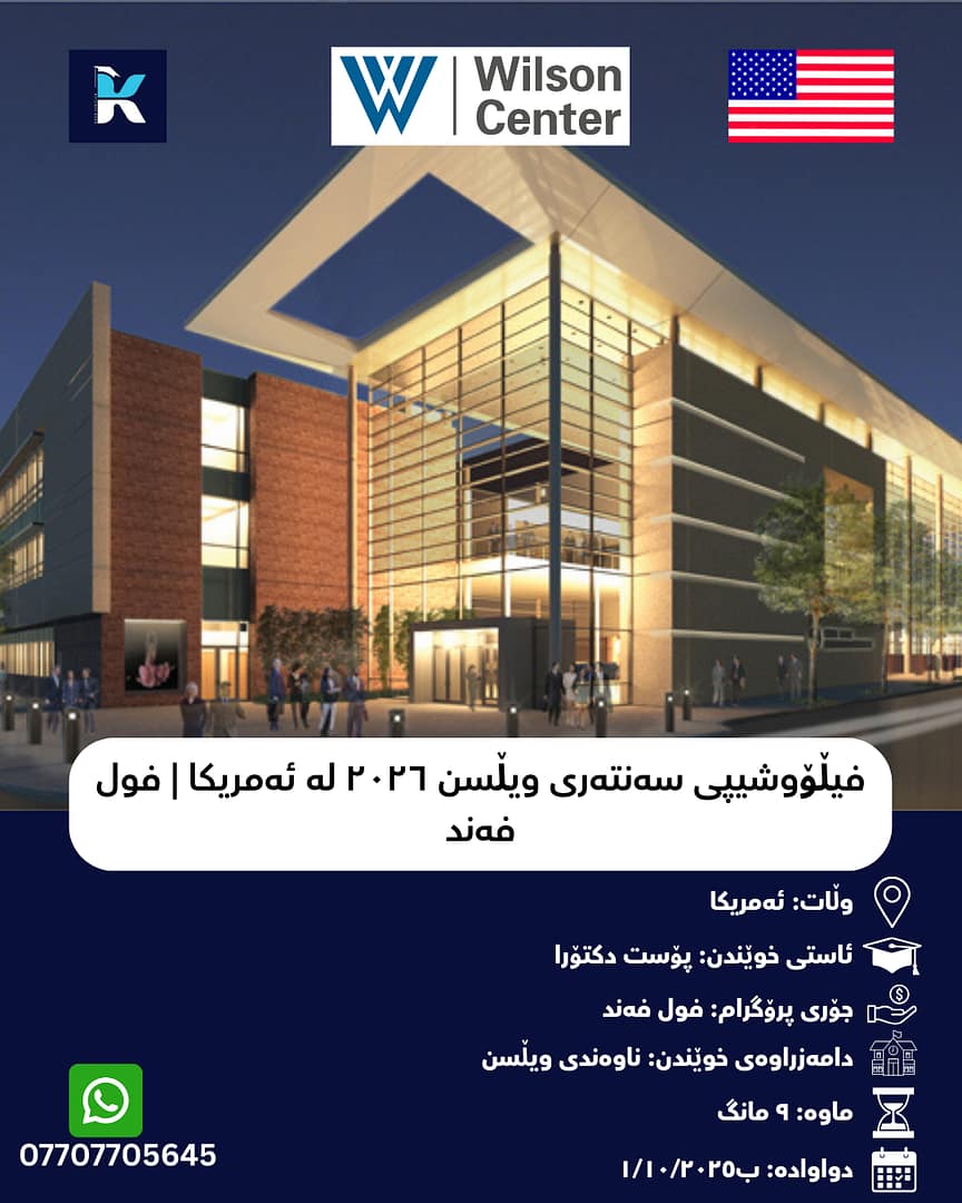 فیڵۆوشیپی سەنتەری ویڵسن دەرفەتێکی ناوازەیە و یەکێکە لە پرۆگرامە ئاست بەرزەکانی ویلایەتە یەکگرتووەکانی ئەمریکا تایبەت بە زانایان، ڕۆژنامەنووسان و ڕۆشنبیران تا لە سەرانسەری جیهانەوە بێن و بۆ ماوەی ٩ مانگ توێژینەوەی ئاست بەرز لە سەنتەرەکە ئەنجامبدەن