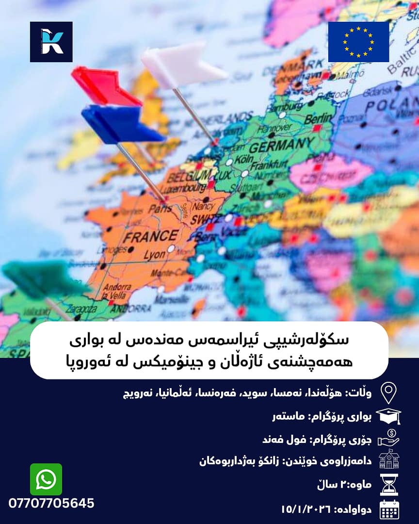 بۆ دەرچوانی بەشی بایۆلۆجی و سامانی ئاژەڵ ئەم دەرفەتە نایابە بۆ ئێوەیە. ئێستا دەرگای پێشکەشکردنی داواکاری بۆ یەکێک لە پرۆگرامە ناوازەکانی ئیراسمەس مەندەس کراوەیە کە. پرۆگرامی ئیراسمەس مەندەس لە سەرانسەری جیهاندا بەناوبانگن بۆ خوێندنی ماستەری ٢ ساڵین. ئەوەی ئەم پرۆگرامە جیا دەکاتەوە ئەوەیە خوێندنەکەت لە وڵاتەکانی یەکێتی ئەوروپا دەبێت و ماوەی خوێندنەکەت لە ٣ وڵاتی جیاواز و ٣ زانکۆی جیاواز بەسەردەبەی